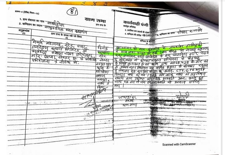 सूत्रों से मिली जानकारी के अनुसार जिस ग्राम सभा के दस्तावेजों के आधार पर जंगल की कटाई को वैध बताया गया, उसमें न ग्राम सभा की तिथि दर्ज है और न ही वह ग्राम सभा वास्तव में आयोजित की गई थी, दस्तावेजों में जयशंकर राठिया को ग्राम सभा का अध्यक्ष बताया गया है,जबकि जांच में सामने आया कि इस नाम का कोई व्यक्ति सराईटोला पंचायत में है ही नहीं-???