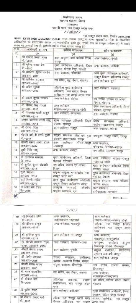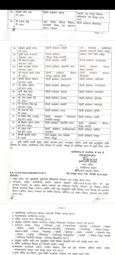 अब वे राजनांदगांव में डिप्टी कलेक्टर की जिम्मेदारी संभालेंगे,इसी आदेश के तहत मोहला-मानपुर-अंबागढ़ चौकी के डिप्टी कलेक्टर प्रफुल कुमार रजक को सारंगढ़-बिलाईगढ़ जिले में डिप्टी कलेक्टर पदस्थ किया गया है:-देखे पूरा सुची