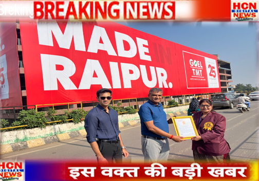 गोयल TMT ने रचा कीर्तिमान-रायपुर में लगाया भारत का सबसे बड़ा बिल्डिंग रैप,गोल्डन बुक ऑफ वर्ल्ड रिकॉर्ड्स ने किया सम्मानित…..by भूपेंद्र ठाकुरNovember 12, 2025